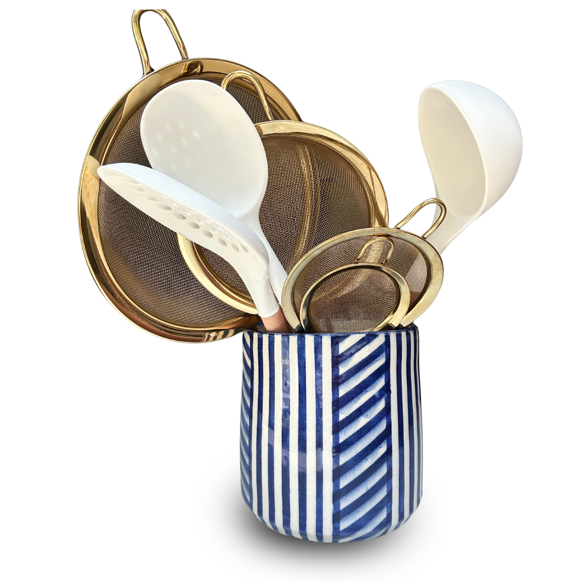 This charming container is crafted on the wheel and hand-glazed in a vibrant royal blue. Its sleek shape lends itself to all kinds of uses, making it a delightful addition to any space. Measuring 5.5" by 5.5", it’s as fun as it is functional!